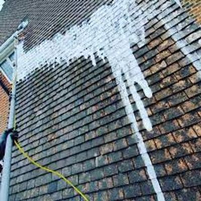 Roof cleaning with steam is another option for roof cleaning. It gives you instant results without the use of high pressure and harsh chemicals. We believe this is the best method to make your roof look new again quickly! All work is carried out from either ground or a free standing scaffolding tower. We never stand on your roof. A full gutter clear and clean is also included at no extra cost. The benefits of this service is to prolong the lifespan of the tiles on your roof, no more moss dropping onto your driveway, patio or pathways and no more moss blocking your guttering and down pipes. It also this process will improve curbside appeal potentially adding value to your home.